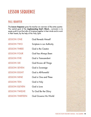 Youth Sunday School Curriculum. Year One, Fall
