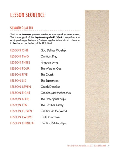 Youth Sunday School Curriculum. Year One, Summer