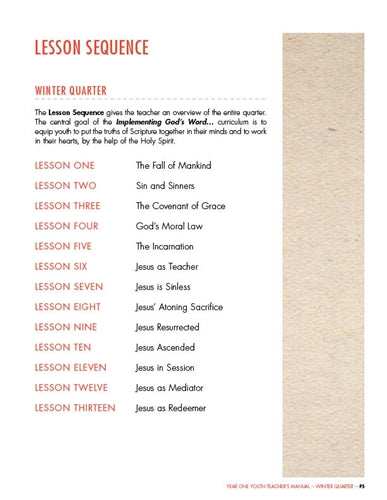 Youth Sunday School Curriculum. Year One, Winter