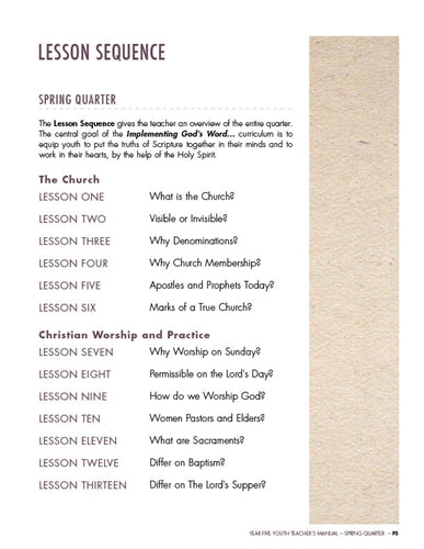 Youth Sunday School Curriculum. Year Five, Spring