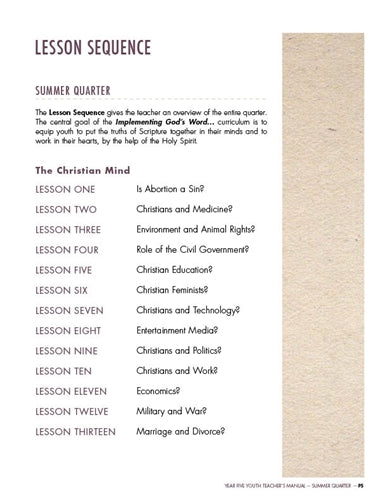 Youth Sunday School Curriculum. Year Five, Summer