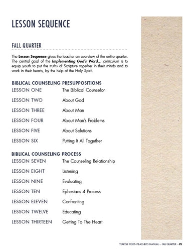 Implementing God’s Word… is a six year, Christ-centered and Gospel-Driven Sunday School curriculum for Middle School and High School students. Each quarter includes 13 lessons for a total of 52 weeks each year. To learn more about Implementing God’s Word… please read about the curriculum sequence, distinctives, and components--and download any or all sample lessons. This series can be easily adapted for use as a Middle/High School Homeschool Bible curriculum!